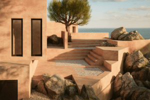 Nestled on the dramatic cliffs of Dhërmi, Albania, Limestone is an ongoing residential project envisioned as a seamless extension of its natural setting. The design draws inspiration from the rugged coastal landscape, using monolithic stone volumes and warm earthy tones that echo the surrounding rock formations. This architectural approach not only grounds the residence in its environment but also creates a timeless aesthetic that feels both sculptural and organic. A defining feature of the project is its infinity pool, strategically positioned to dissolve the boundary between architecture and horizon. The material palette is deliberately minimal and natural, emphasizing limestone and textured surfaces that age gracefully over time while ensuring durability in the coastal climate.Open-plan interiors connect seamlessly to outdoor platforms, encouraging a lifestyle centered around nature, light, and views. Careful orientation maximizes natural ventilation and daylight, reducing the environmental footprint while enhancing the living experience. Limestone is more than a private retreat—it is a statement of architectural sensitivity, where contemporary design meets sustainability and the raw beauty of the Albanian Riviera.