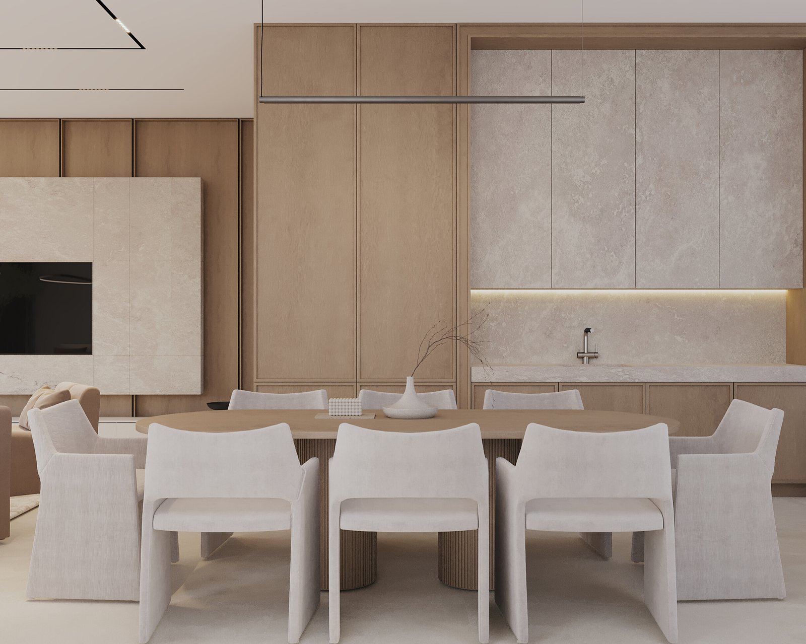 This villa interior design project was envisioned as a harmonious dialogue between modern sophistication and natural serenity. The design reflects the client’s desire for a home that feels elegant yet deeply comfortable, with every space tailored to enhance daily living. We drew inspiration from the surrounding environment, integrating neutral tones, warm wood textures, and soft materials that create a calming, timeless atmosphere. Expansive floor-to-ceiling glazing blurs the line between indoor and outdoor living, bathing the interiors in natural light and framing views of nature.Furniture and finishes were carefully curated to balance luxury with practicality, offering both aesthetic beauty and everyday usability. The villa embodies a lifestyle of understated elegance, where architecture and interior design come together to create an environment that is not only visually refined but also emotionally warm and livable.